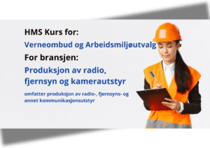 Dette kurset er bransjespesifikt for Produksjon av radio, fjernsyn og kamerautstyr. Bransjen omfatter produksjon av radio-, fjernsyns- og annet kommunikasjonsutstyr. I dette online kurset får