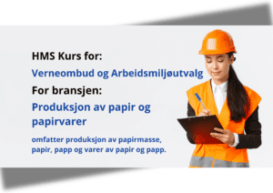 Dette kurset er bransjespesifikt for Produksjon av papir og papirvarer Bransjen omfatter produksjon av papirmasse, papir, papp og varer av papir og papp. I dette